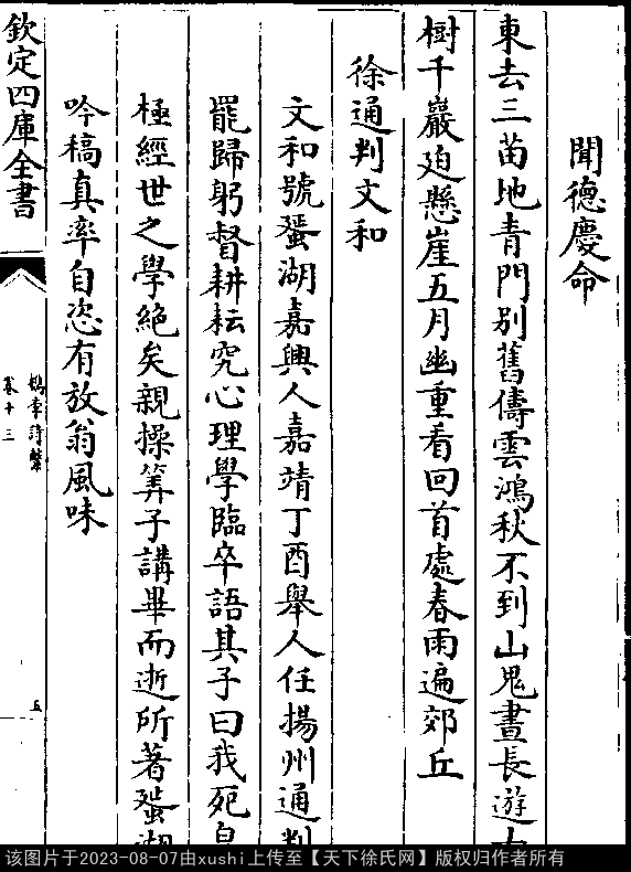 五言律诗 押真韵 出处:槜李诗系卷十三