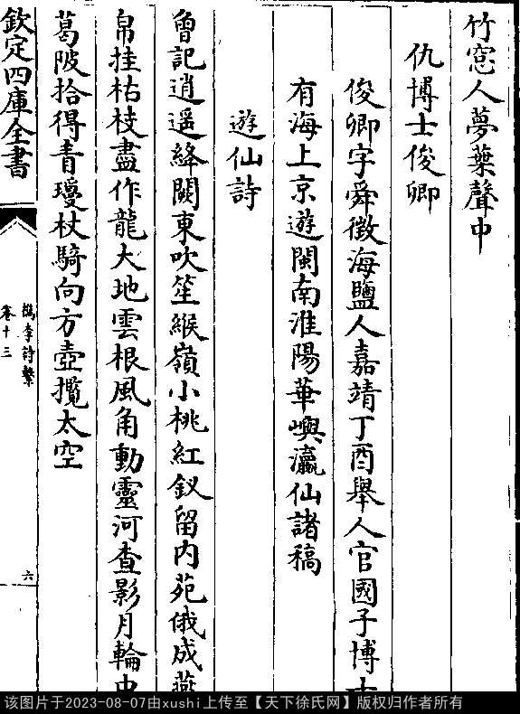 出处:《檇李詩繫-清-沈季友》卷十三(第 5b - 6b 頁)