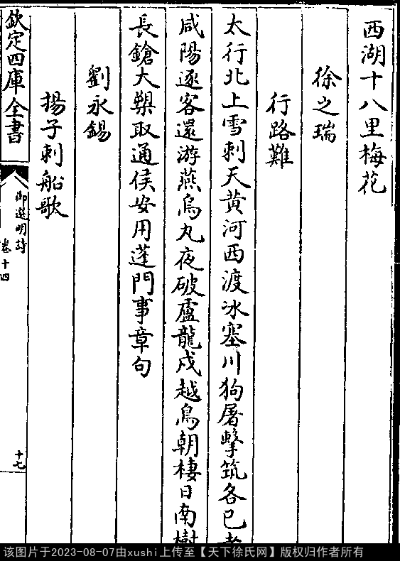 《御選宋金元明四朝詩-清-聖祖玄燁》御選宋金元明四朝詩 御選明詩卷十四(第 17a - 17b 頁)