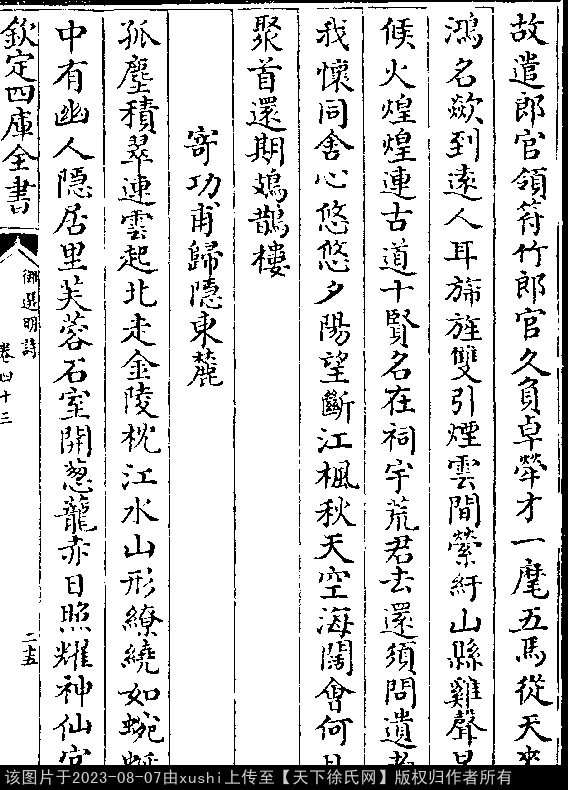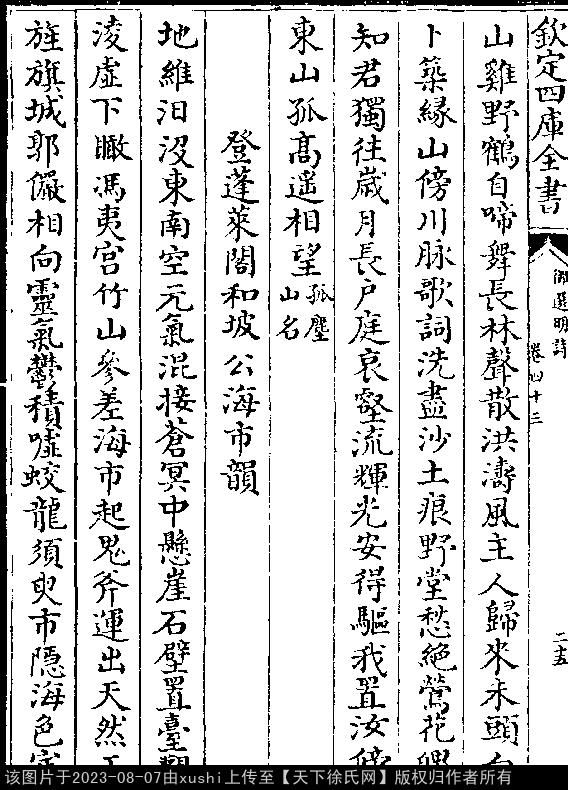 押词韵第一部 出处:御选明诗卷四十三