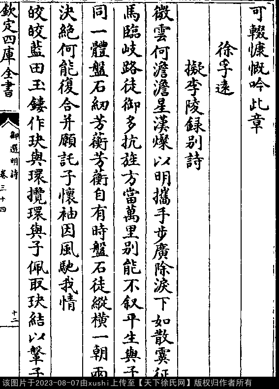 《御選宋金元明四朝詩-清-聖祖玄燁》御選宋金元明四朝詩 御選明詩卷三十四(第 12a - 13a 頁)