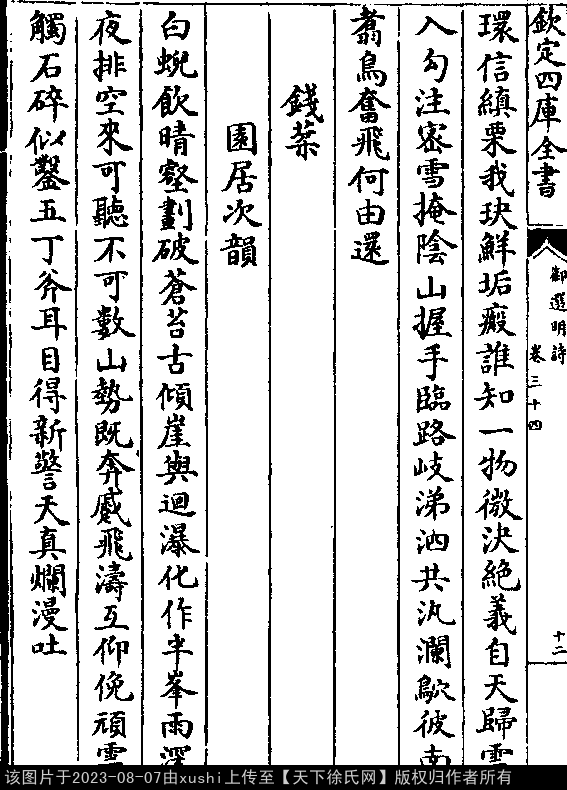 押词韵第七部 出处:御选明诗卷三十四