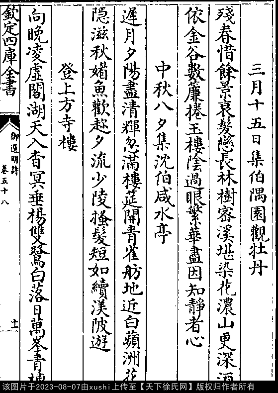 五言律诗 押侵韵 出处:御选明诗卷五十八