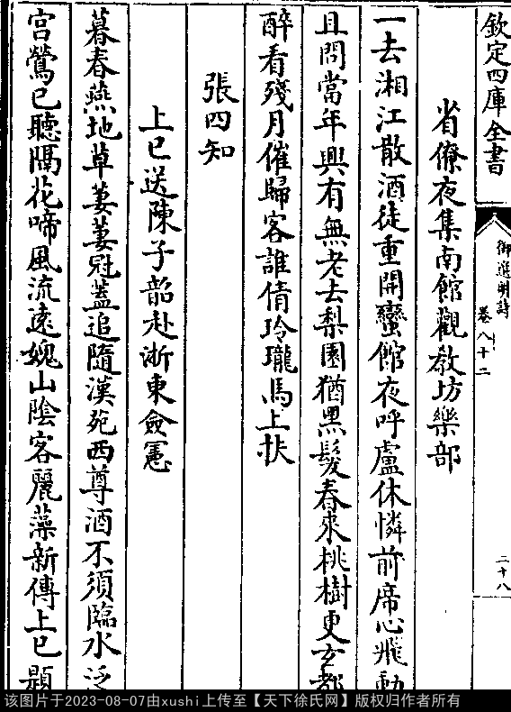 《御選宋金元明四朝詩-清-聖祖玄燁》御選宋金元明四朝詩 御選明詩卷八十二(第 28b - 29a 頁)