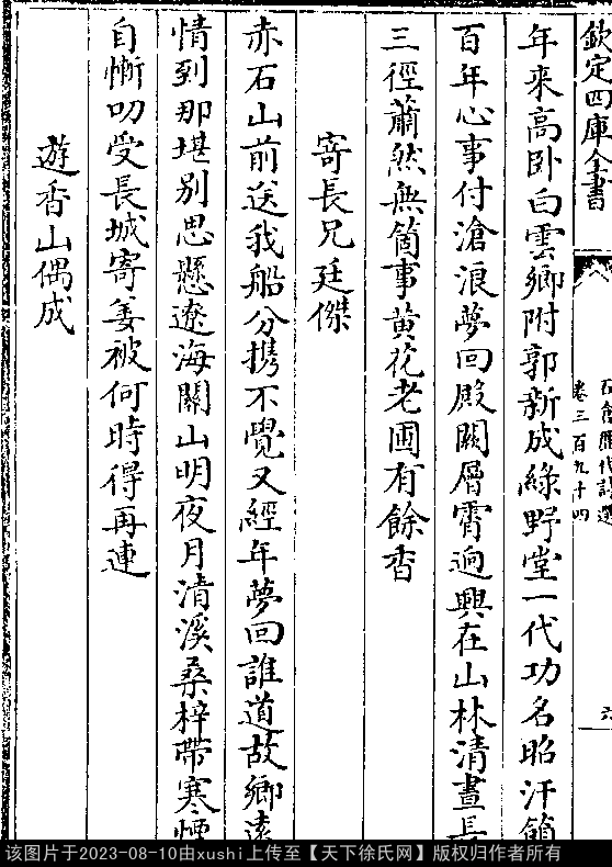七言律诗 押阳韵 出处:石仓历代诗选卷三百九十四