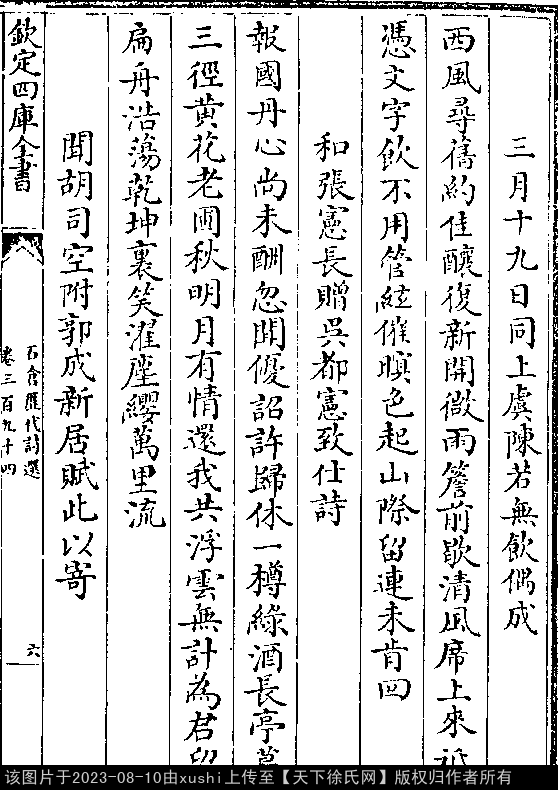 七言律诗 押先韵 出处:石仓历代诗选卷三百九十四
