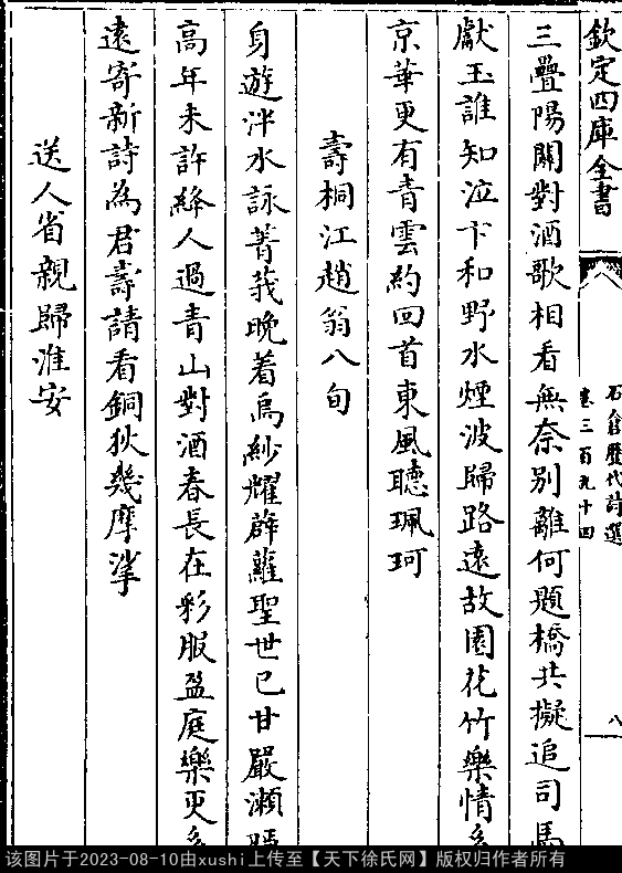 七言律诗 押删韵 出处:石仓历代诗选卷三百九十四