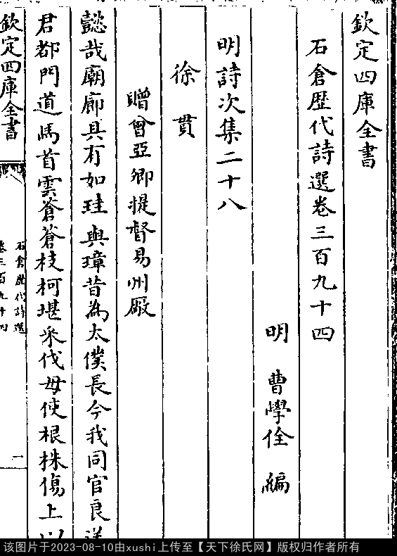 《石倉歷代詩選-明-曹學佺》卷三百九十四(第 1b - 2a 頁)