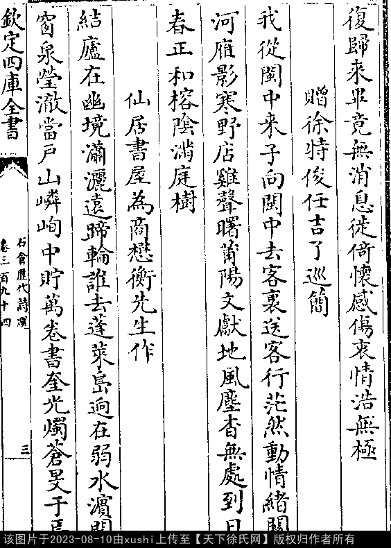 押词韵第十七部 出处:石仓历代诗选卷三百九十四