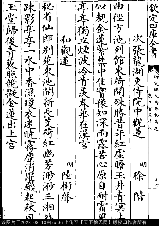 《御定佩文齋詠物詩選-清-張玉書》卷三百五十八(第 16b - 17a 頁)