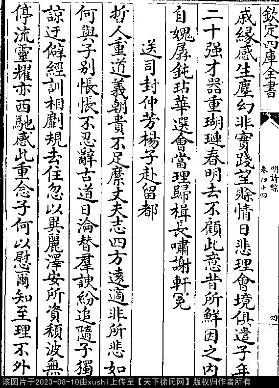 押词韵第十七部 出处:御选明诗卷二十六