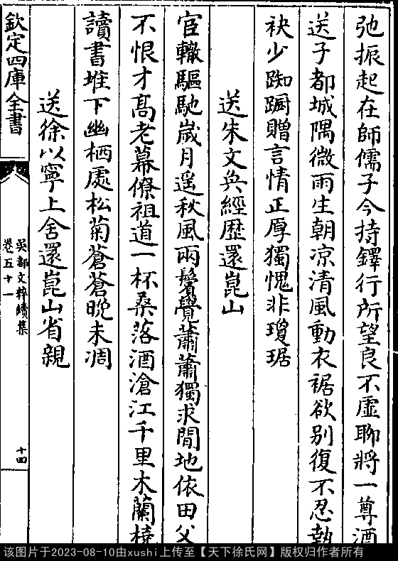文化 送汝兵马思聪归吴江焚黄 明 · 徐有贞
