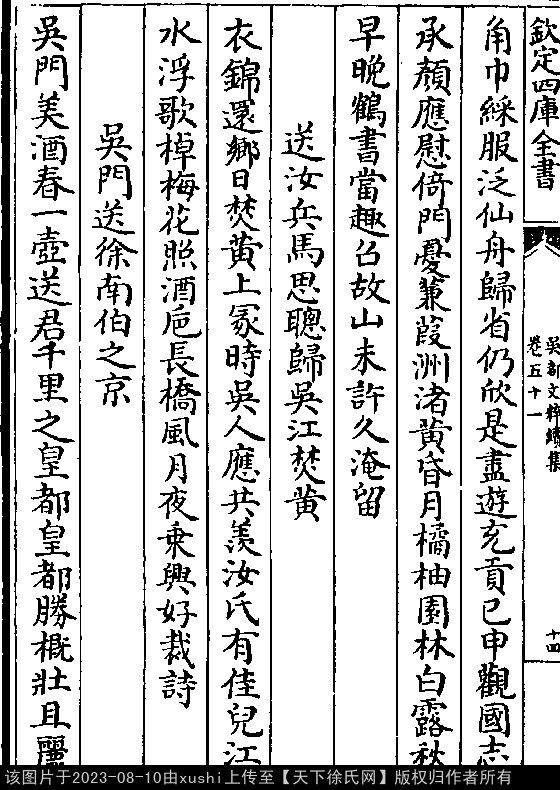 七言律诗 押尤韵 出处:吴都文粹续集卷五十一