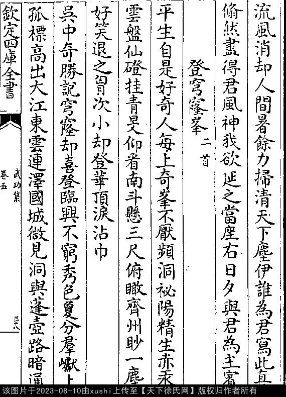 文化 登穹窿峰二首 明 · 徐有贞