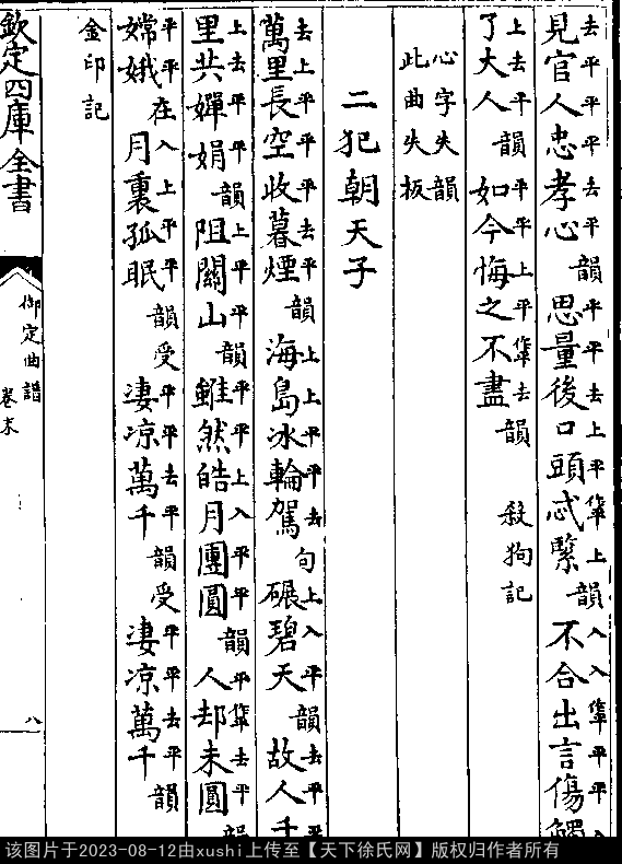 《御定曲譜-清-王奕清》卷末(第 8a - 8b 頁)