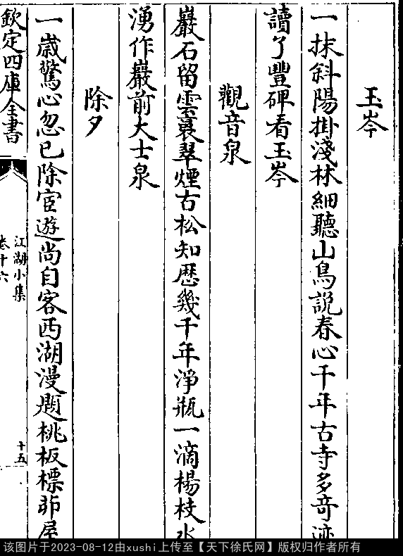 净瓶一滴杨枝水,涌作岩前大士泉。
