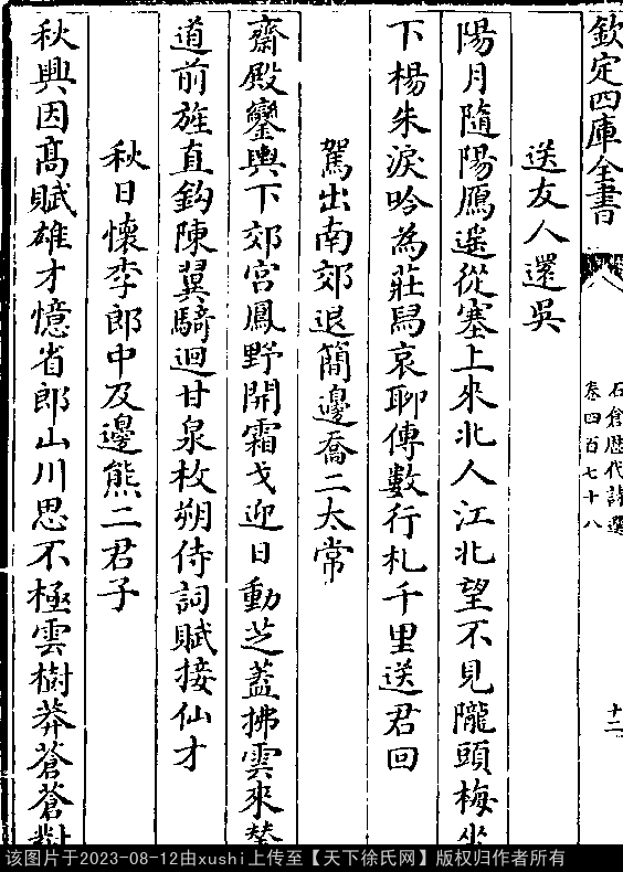 《石倉歷代詩選-明-曹學佺》卷四百七十八(第 12b - 13a 頁)