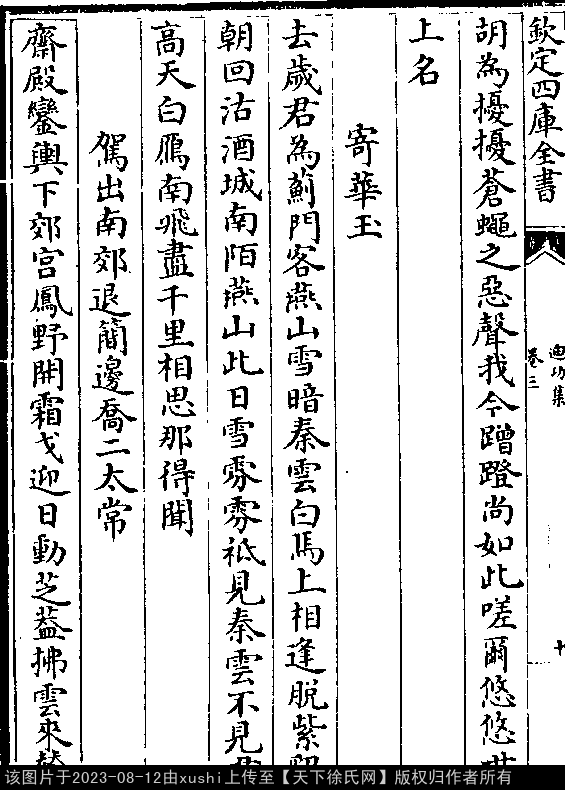 文化 人日柬李员外出陪郊祀 明 · 徐祯卿
