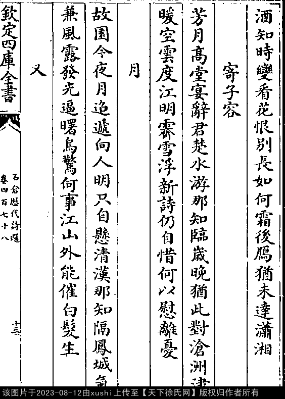 《石倉歷代詩選-明-曹學佺》卷四百七十八(第 13a - 13b 頁)