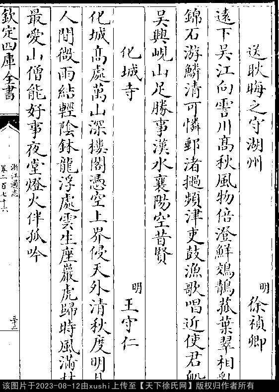 文化 送耿晦之守湖州 明 · 徐祯卿