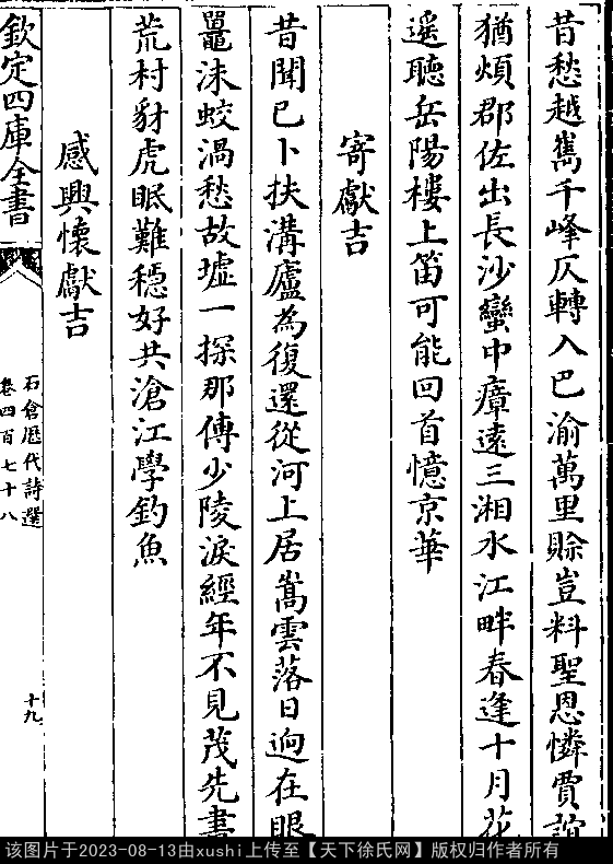 《石倉歷代詩選-明-曹學佺》卷四百七十八(第 19b - 20a 頁)