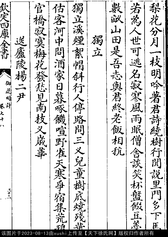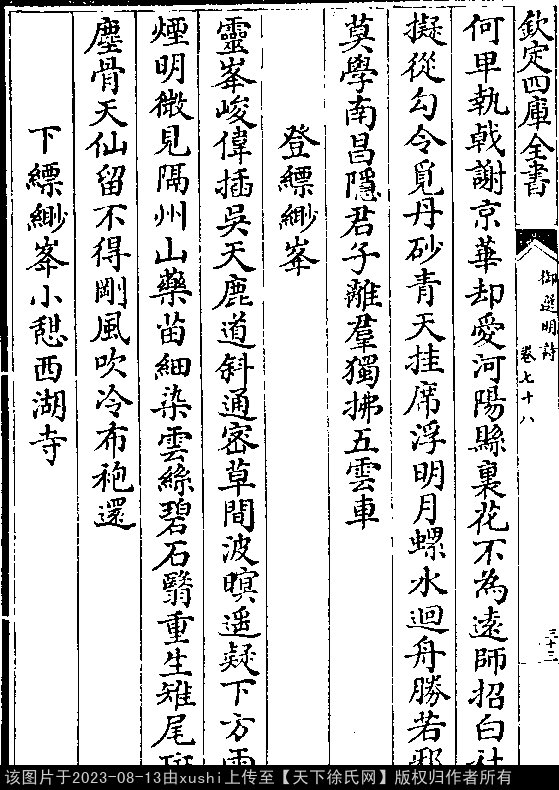 七言律诗 押删韵 出处:御选明诗卷七十八