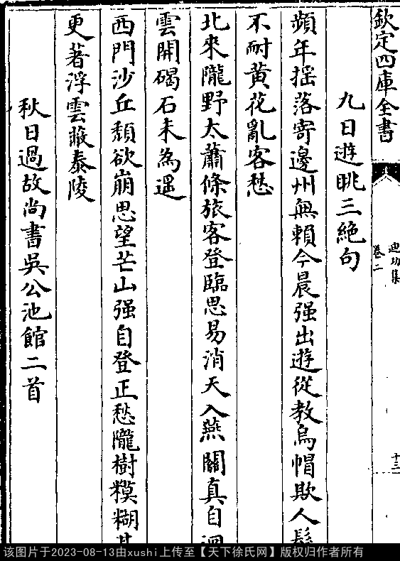 文化 九日游眺三绝句 三首 明 · 徐祯卿