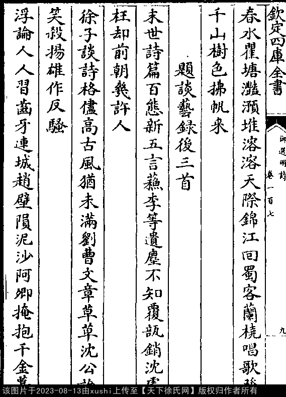 文化 题谈艺录后三首 明 · 徐祯卿