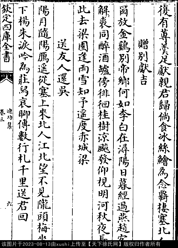 文化 送唐季和谪谷城 明 · 徐祯卿