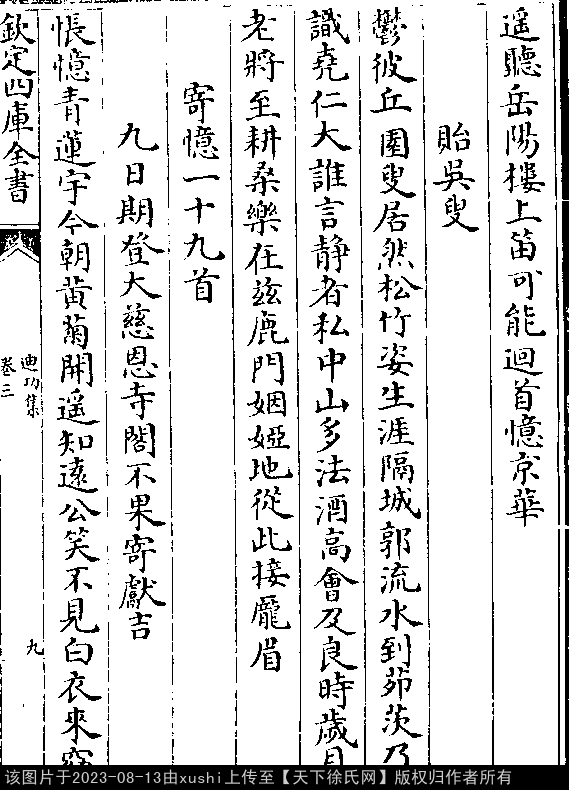 文化 九日期登大慈恩寺阁不果寄献吉 明 · 徐祯卿