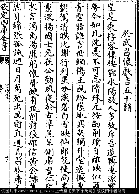 于武昌怀献吉五十韵 明 · 徐祯卿