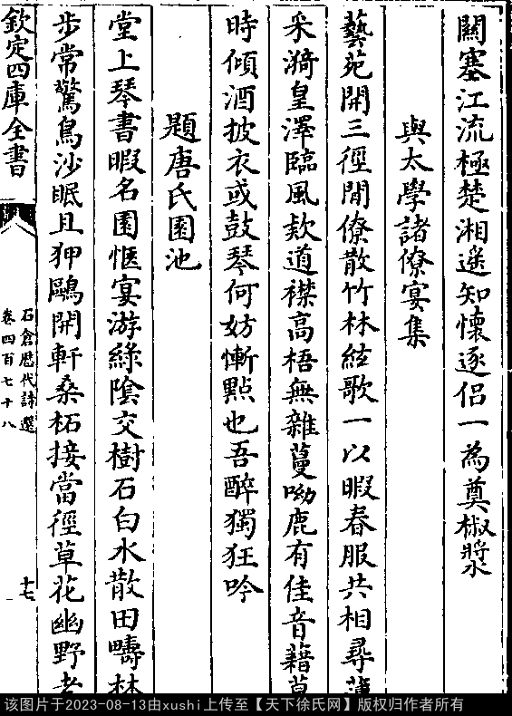 《石倉歷代詩選-明-曹學佺》卷四百七十八(第 17a - 17b 頁)