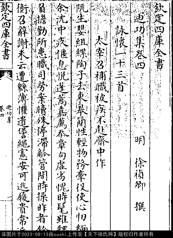 文化 太宰召补职被疾不赴斋中作 明 · 徐祯卿