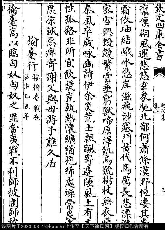 文化 榆台行(按榆台战在弘治乙丑年) 明 · 徐祯卿