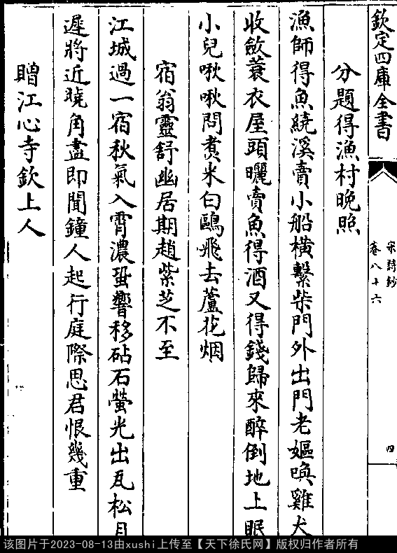 出处:《宋詩鈔-清-吳之振》卷八十六(第 5a - 5b 頁)
