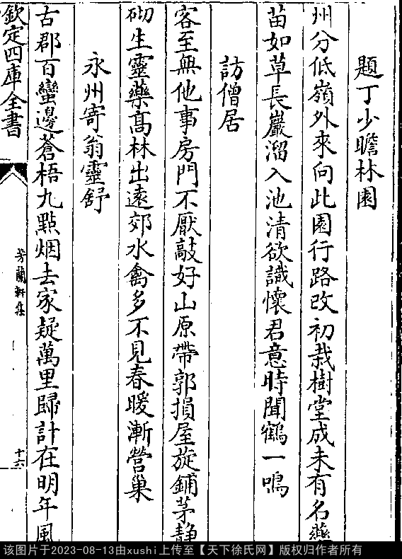文化 题丁少瞻林园 南宋 · 徐照