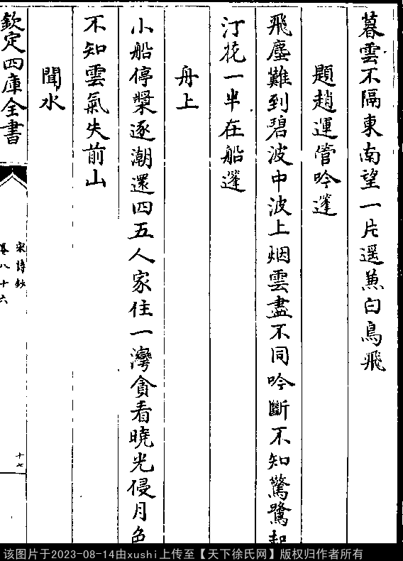 出处:《宋詩鈔-清-吳之振》卷八十六(第 17a - 17b 頁)