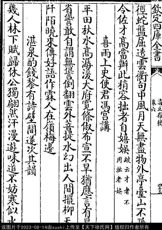文化 喜雨上史使君冯宫讲 南宋 · 徐鹿卿