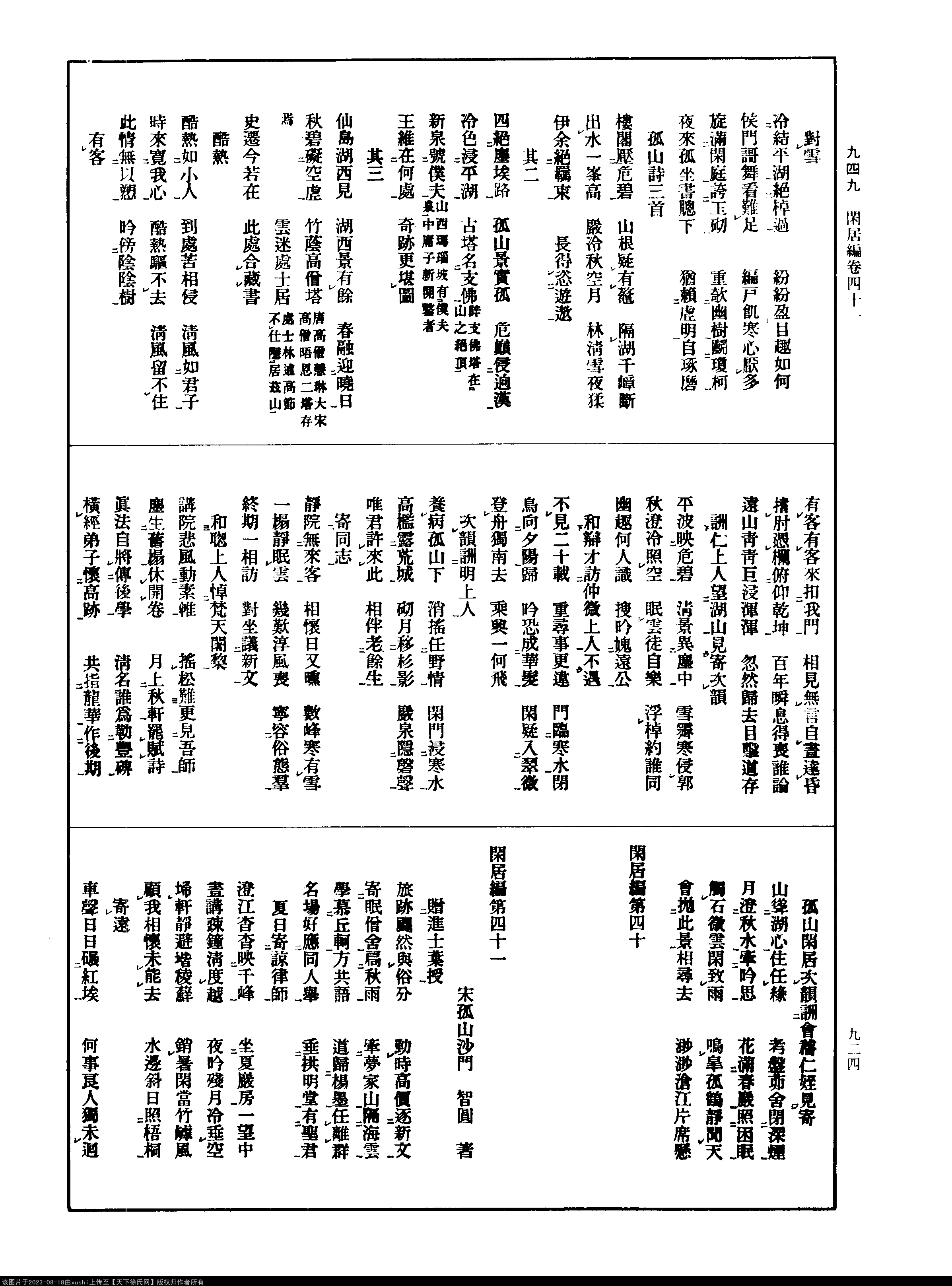 《閑居編-宋-智圓》經武康小山法瑤師舊居¶(第 924a - 924b 頁)